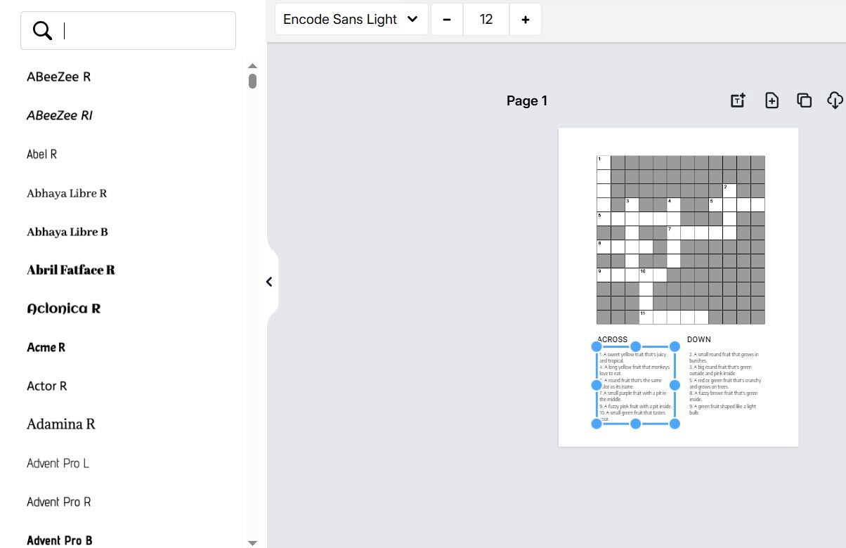 Yep! That’s right! You can choose from as many as 900+ high quality fonts for your workbooks. You will never feel the need of another font when creating your crosswords puzzle book.