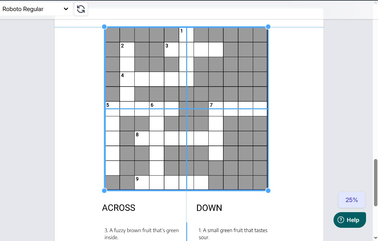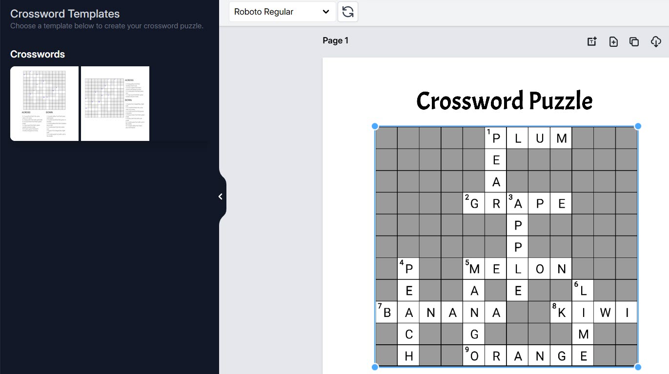 Creating crosswords puzzles for kids is super simple. Use a design editor of your choice and create a crosswords puzzle to get started.