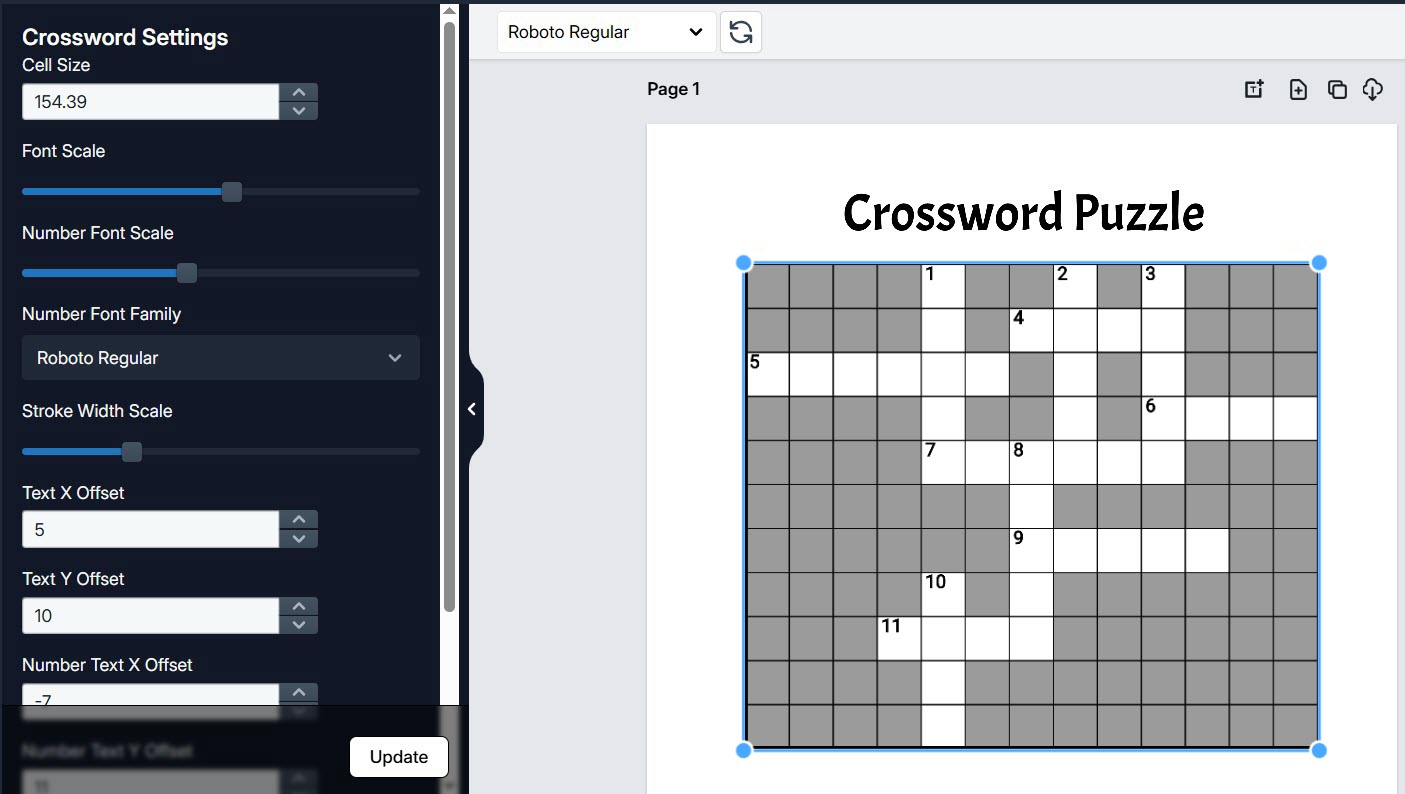Not happy with a crosswords puzzle’s layout or aspect ratio? Click on the puzzle regenerator button and generate a fresh new puzzle layout with the same word list in seconds. There’s no exaggeration here.