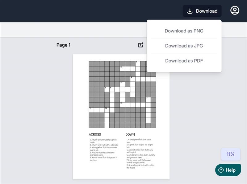 That’s it! Your high-quality crosswords puzzle book is now ready to download. Export as individual puzzle pages or a complete, formatted book — all at the click of a button.